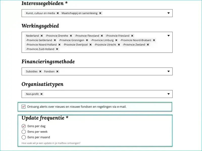 En ontvangt hierna per mail een seintje bij nieuwe subsidies of nieuwe aanvraagperioden.