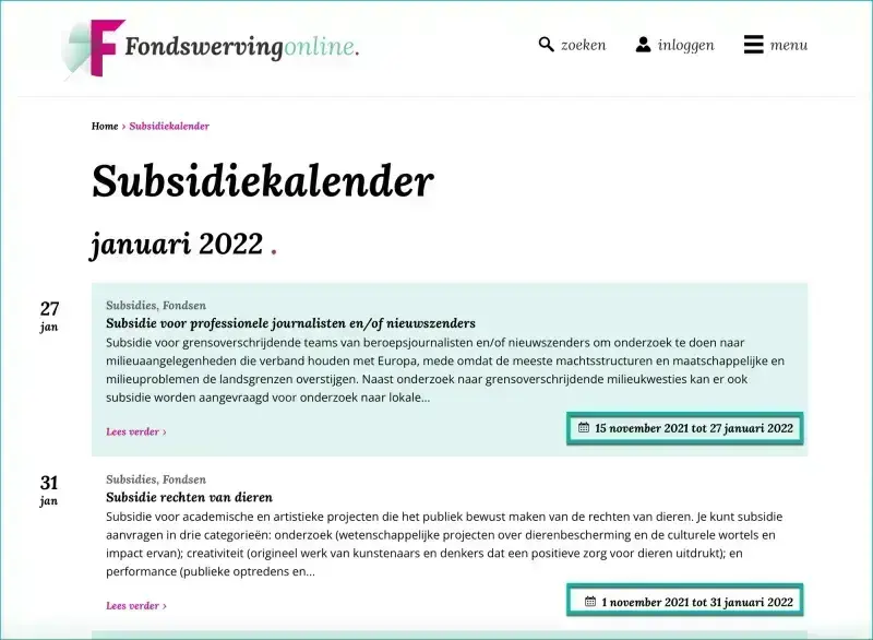 - Een handige tool is de subsidiekalender, hiermee kun je ook automatische alerts instellen die je automatisch op de hoogte houden van nieuwe subsidies en aanvraagperioden